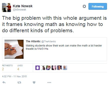 I’ve tried to write this post many times. Each time I write the opening sentence, it seems to pale in comparison to the grand scope of what it should encompass. Access and equity is a huge topic, not only in math classes, but in education at large. Often equity is discussed in terms of gender, socio-economic, racial, or sexual orientation. These conversations are also vital, but this post will focus on equity for students with disabilities through access to rich mathematics curricula. However, writing a post about access for students with disabilities in robust math classes is still a daunting task. Since I believe in the importance of this topic I’m going to just begin, though I’ll probably regret how I began once I’ve finished.